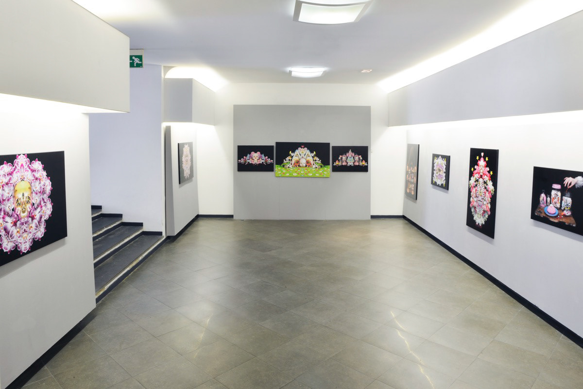 From September 7 to 17, 2018, Cristina Burns’s solo exhibition CandyLand was held at the Museum of Contemporary Art Palazzo delle Arti di Napoli (PAN), in collaboration with the Assessorato alla Cultura e al Turismo del Comune di Napoli. This milestone exhibition presented a multi-room exploration of Burns’s artistic universe, showcasing works from series such as Through the Mirror, Delusional Parasitosis, Urban Fairy Tales, and Glitch.