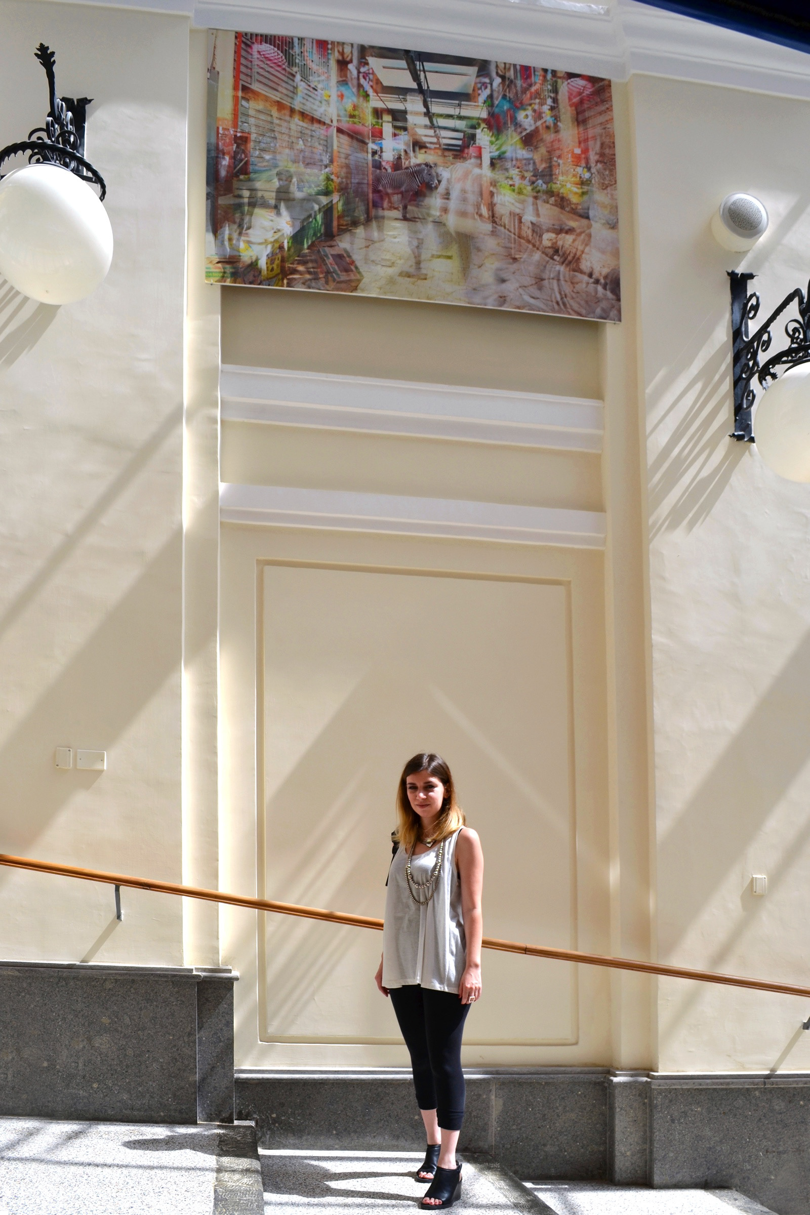 Cristina Burns’s artwork, Stratificazioni Antropologiche (Anthropological Stratifications), was temporarily exhibited in the Central Funicular of Naples as part of the Raffaele Pezzuti Art Prize showcase in 2017. This prestigious event celebrated the talents of emerging artists, with Burns’s work standing out for its profound exploration of Naples as a historical and cultural crossroads.Set against the dynamic backdrop of one of Naples' most iconic transportation hubs, Stratificazioni Antropologiche reflects the city’s rich multicultural identity. The composition is situated in a bustling marketplace where ephemeral figures overlap, symbolizing the passage of time and the interweaving of diverse identities. A zebra, representing the cradle of civilization, is juxtaposed with Chinese lanterns and bronze runners crossing a Roman mosaic floor—elements that evoke a mystical interplay between history, culture, and innovation.