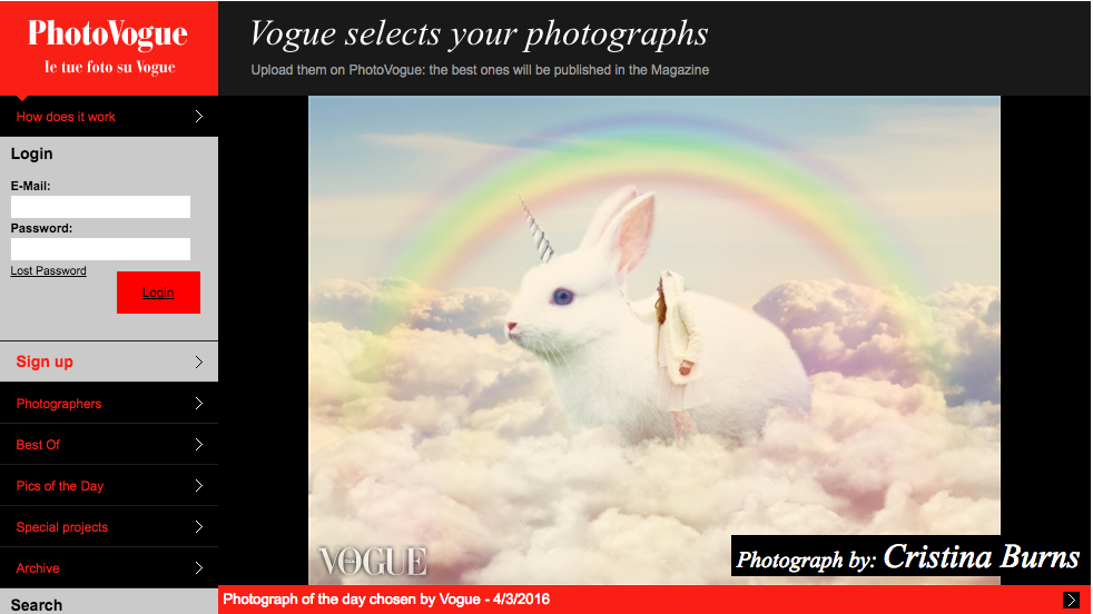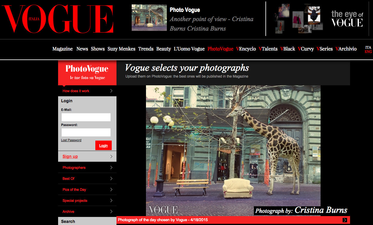 Vogue.it Homepage — “Trend of the Day: PhotoVogue: Cristina Burns” (2015)